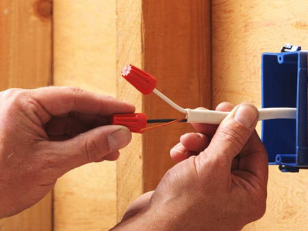 Most wiring in a home is either 12-gauge or 14-gauge. Always cut the power supply at the breaker box before beginning any electrical work. Test the local area with a neon tester to make sure that the power is off.